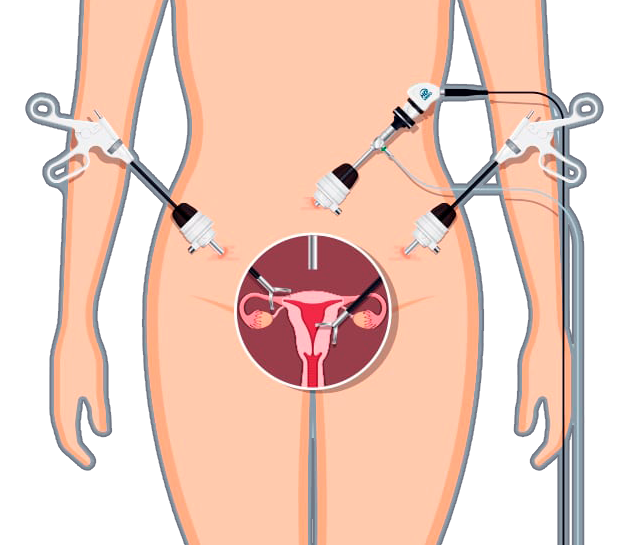É uma cirurgia realizada no hospital, onde a paciente é mantida inconsciente e entubada sob anestesia geral. Através de agulha delicada, é insuflado gás carbônico dentro da cavidade abdominal e são realizados alguns cortes no abdome por onde a cirurgia acontece.